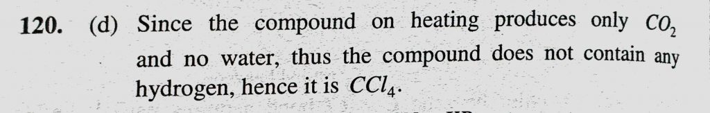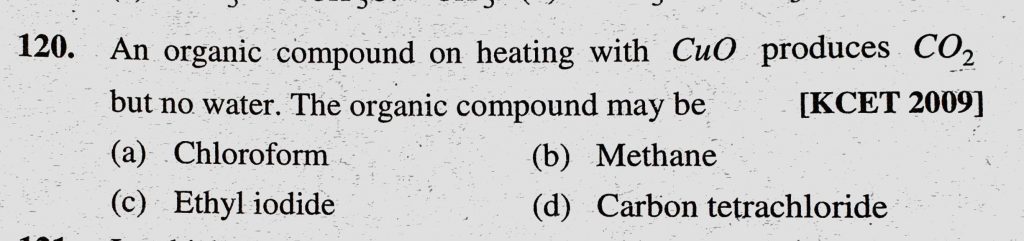 An organic compound on heating with CuO produces CO2 but no water. The organic compound may be (a) Chloroform (b) Methane (c) Ethyl iodide An organic compound on heating with CuO produces CO2 but no water. The organic compound may be (a) Chloroform (b) Methane (c) Ethyl iodide February 8, 2021 Category: Uncategorised (JEE Advanced Physics by BM Sharma + GMP Solutions) , Facebook Messenger WhatsApp Share this:TwitterFacebook Related