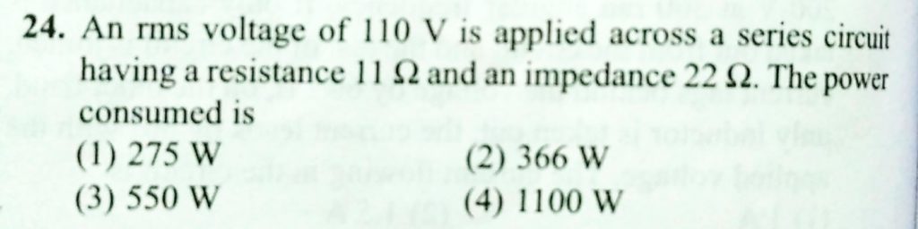 An rms voltage of 110 V is applied across a series circuit having a resistance 11 ohm and an impedance 22 ohm. The power consumed is An rms voltage of 110 V is applied across a series circuit having a resistance 11 ohm and an impedance 22 ohm. The power consumed is October 27, 2020 Category: Uncategorised (JEE Advanced Physics by BM Sharma + GMP Solutions) , Facebook Messenger WhatsApp Share this:TwitterFacebook Related