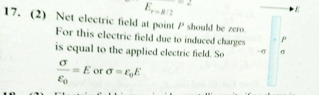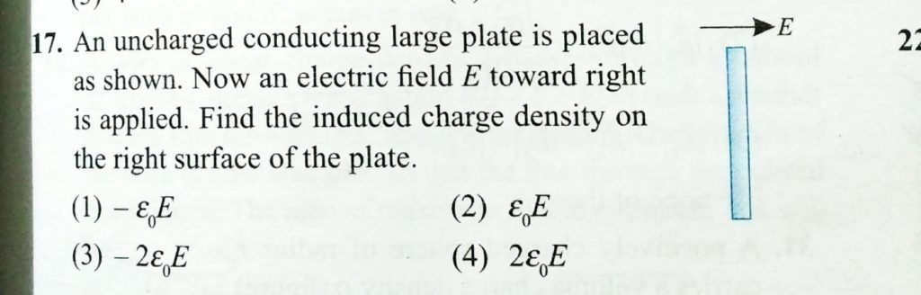 An uncharged conducting large plate is placed as shown. Now an electric field E toward right is applied. Find the induced charged charge density on the right surface of the plate . An uncharged conducting large plate is placed as shown. Now an electric field E toward right is applied. Find the induced charged charge density on the right surface of the plate . October 31, 2020 Category: Uncategorised (JEE Advanced Physics by BM Sharma + GMP Solutions) , Facebook Messenger WhatsApp Share this:TwitterFacebook Related