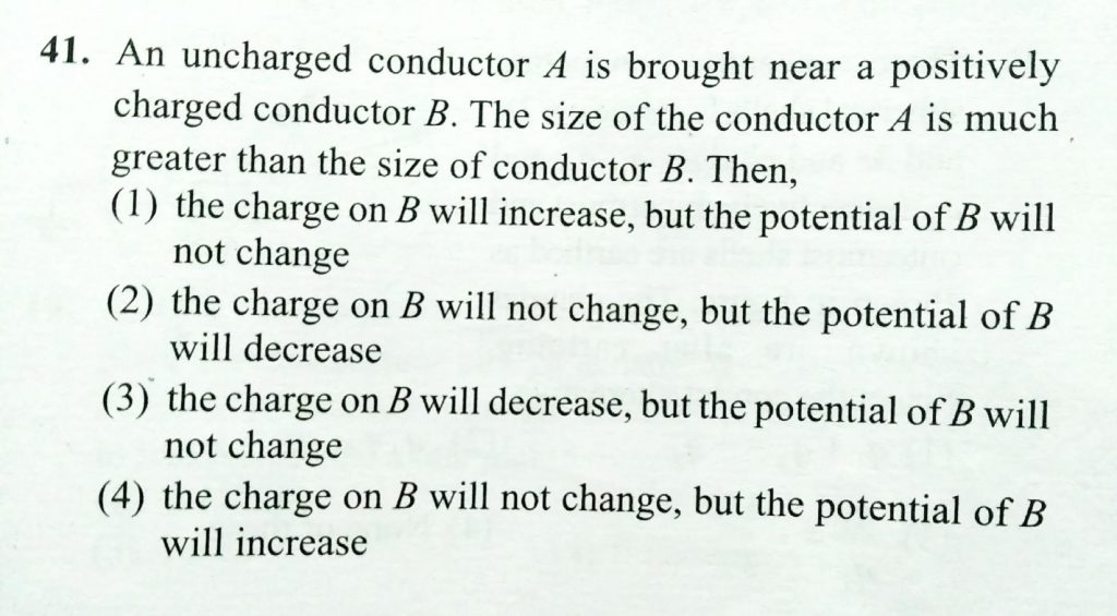 An uncharged conductor A is brought near a positively charged conductor B. The size of the conductor A is much greater than the size of conductor B. then , An uncharged conductor A is brought near a positively charged conductor B. The size of the conductor A is much greater than the size of conductor B. then November 5, 2020 Category: Uncategorised (JEE Advanced Physics by BM Sharma + GMP Solutions) , Facebook Messenger WhatsApp Share this:TwitterFacebook Related