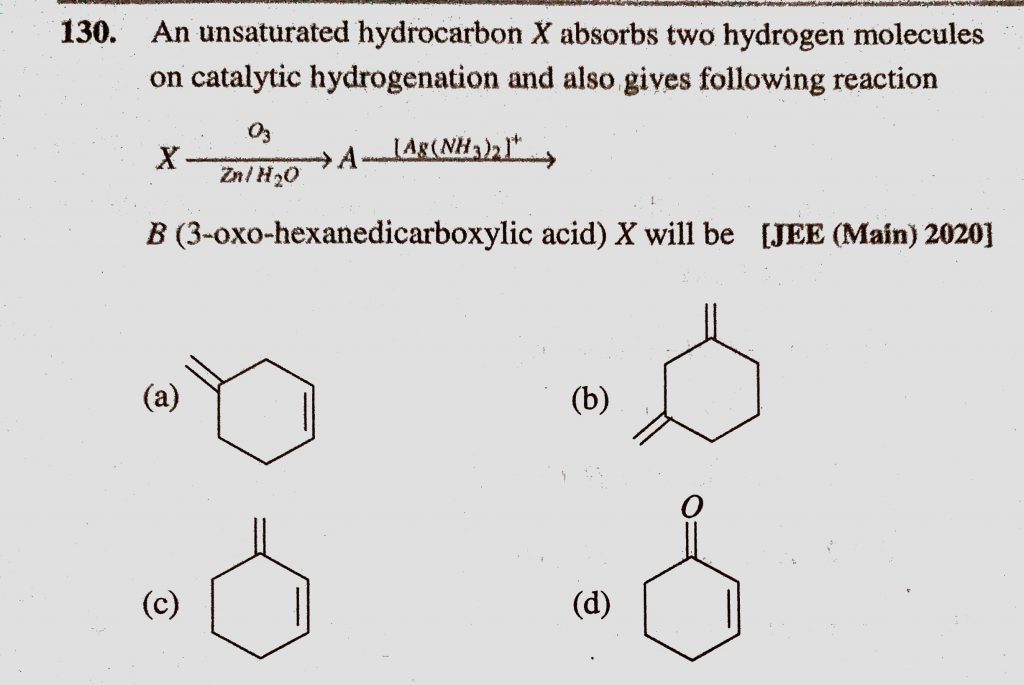 An unsaturated hydrocarbon X absorbs two hydrogen molecules on catalytic hydrogenation and also gives following reaction b (3-oxo-hexanedicarboxylic acid) X will be An unsaturated hydrocarbon X absorbs two hydrogen molecules on catalytic hydrogenation and also gives following reaction b (3-oxo-hexanedicarboxylic acid) X will be December 16, 2020 Category: Uncategorised (JEE Advanced Physics by BM Sharma + GMP Solutions) , Facebook Messenger WhatsApp Share this:TwitterFacebook Related