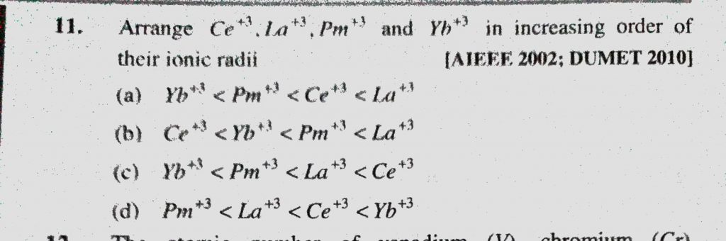 Arrange Ce +3 , La +3 , Pm+3 and Yb +3 in increasing order of their ionic radii Arrange Ce +3 La 3+ Pm+3 and Yb +3 in increasing order of their ionic radii December 2, 2020 Category: Uncategorised (JEE Advanced Physics by BM Sharma + GMP Solutions) , Facebook Messenger WhatsApp Share this:TwitterFacebook Related