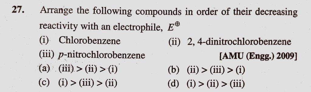 Arrange the following compounds in order of their decreasing reactivity with an electrophile, E (i) Chlorobenzene (ii) 2, 4-dinitrochlorobenzene 4-dinitrochlorobenzene Arrange the following compounds in order of their decreasing reactivity with an electrophile E (i) Chlorobenzene (ii) 2 December 9, 2020 Category: Uncategorised (JEE Advanced Physics by BM Sharma + GMP Solutions) , Facebook Messenger WhatsApp Share this:TwitterFacebook Related