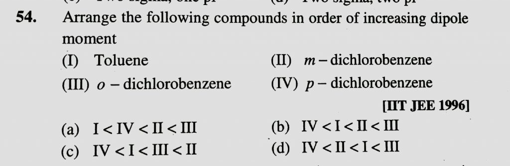 Arrange the following compounds in order of increasing dipole moment Arrange the following compounds in order of increasing dipole moment December 9, 2020 Category: Uncategorised (JEE Advanced Physics by BM Sharma + GMP Solutions) , Facebook Messenger WhatsApp Share this:TwitterFacebook Related