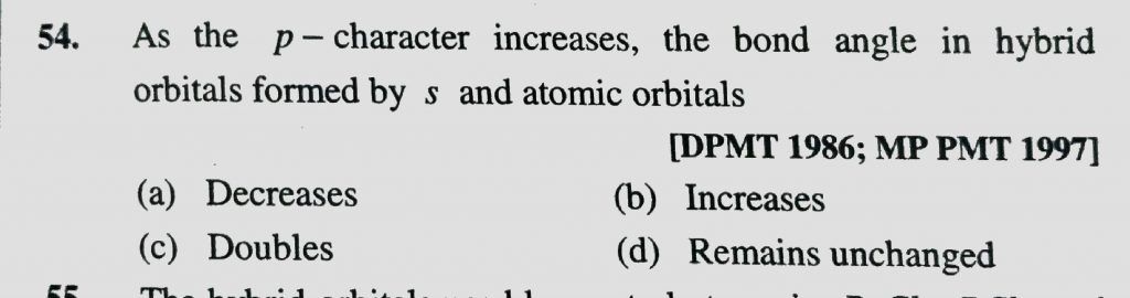 As the p – charcater increases, the bond angle in hybrid orbitals formed by s and atomic orbitals As the p - charcater increases the bond angle in hybrid orbitals formed by s and atomic orbitals December 6, 2020 Category: Uncategorised (JEE Advanced Physics by BM Sharma + GMP Solutions) , Facebook Messenger WhatsApp Share this:TwitterFacebook Related