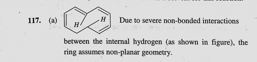 Assertion : (10) Annulene is not aromatic though it contains Huckel number of pie-electrons. Reason : Steric interaction between internal hydrogens makes it non-aromatic. Assertion : (10) Annulene is not aromatic though it contains Huckel number of pie-electrons. Reason : Steric interaction between internal hydrogens makes it non-aromatic. December 15, 2020 Category: Uncategorised (JEE Advanced Physics by BM Sharma + GMP Solutions) , Facebook Messenger WhatsApp Share this:TwitterFacebook Related