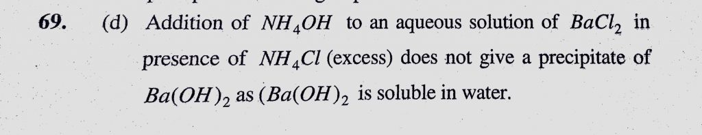 Assertion : Addition of NH4OH to an aqueous solution of BaCl2 in the presence of NH4Cl (excess) precipitates Ba(OH)2 Reason : Ba(OH)2 is insoluble in water. Assertion : Addition of NH4OH to an aqueous solution of BaCl2 in the presence of NH4Cl (excess) precipitates Ba(OH)2 Reason : Ba(OH)2 is insoluble in water. December 7, 2020 Category: Uncategorised (JEE Advanced Physics by BM Sharma + GMP Solutions) , Facebook Messenger WhatsApp Share this:TwitterFacebook Related
