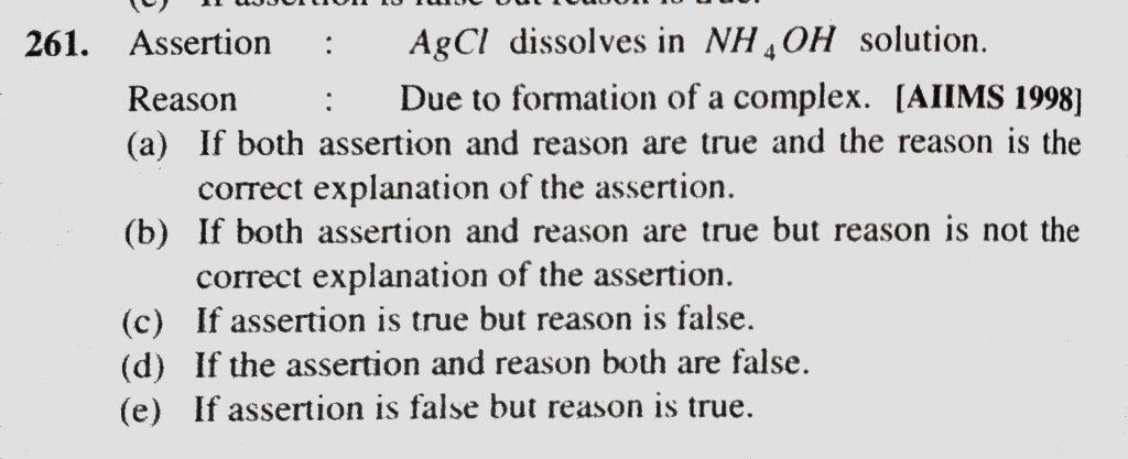 Assertion : AgCl dissolves in NH4OH solution. Reason : Due to formation of a complex. Assertion : AgCl dissolves in NH4OH solution. Reason : Due to formation of a complex. December 2, 2020 Category: Uncategorised (JEE Advanced Physics by BM Sharma + GMP Solutions) , Facebook Messenger WhatsApp Share this:TwitterFacebook Related