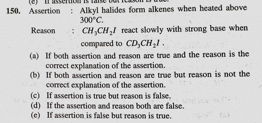 Assertion : Alkyl halides form alkenes when heated above 300 C. Reason : CH3CH2I react slowly with strong base when compared to CD3CH2I. Assertion : Alkyl halides form alkenes when heated above 300 C. Reason : CH3CH2I react slowly with strong base when compared to CD3CH2I. February 9, 2021 Category: Uncategorised (JEE Advanced Physics by BM Sharma + GMP Solutions) , Facebook Messenger WhatsApp Share this:TwitterFacebook Related