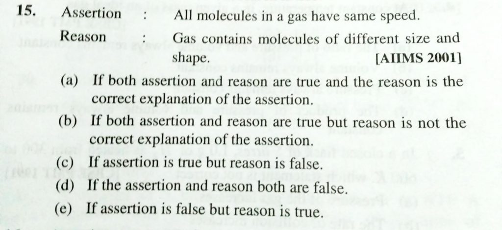 Assertion : All molecules in a gas have same speed. Reason : Gas contains molecules of different size and shape. Assertion : All molecules in a gas have same speed. Reason : Gas contains molecules of different size and shape. February 10, 2021 Category: Uncategorised (JEE Advanced Physics by BM Sharma + GMP Solutions) , Facebook Messenger WhatsApp Share this:TwitterFacebook Related