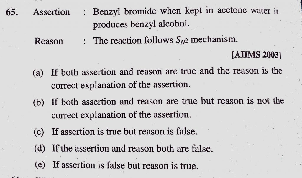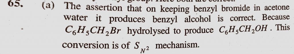 Assertion : Benzyl bromide when kept in acetone water it produces benzyl alcohol. Reason : The reaction follows SN^2 mechanism. Assertion : Benzyl bromide when kept in acetone water it produces benzyl alcohol. Reason : The reaction follows SN^2 mechanism. December 9, 2020 Category: Uncategorised (JEE Advanced Physics by BM Sharma + GMP Solutions) , Facebook Messenger WhatsApp Share this:TwitterFacebook Related