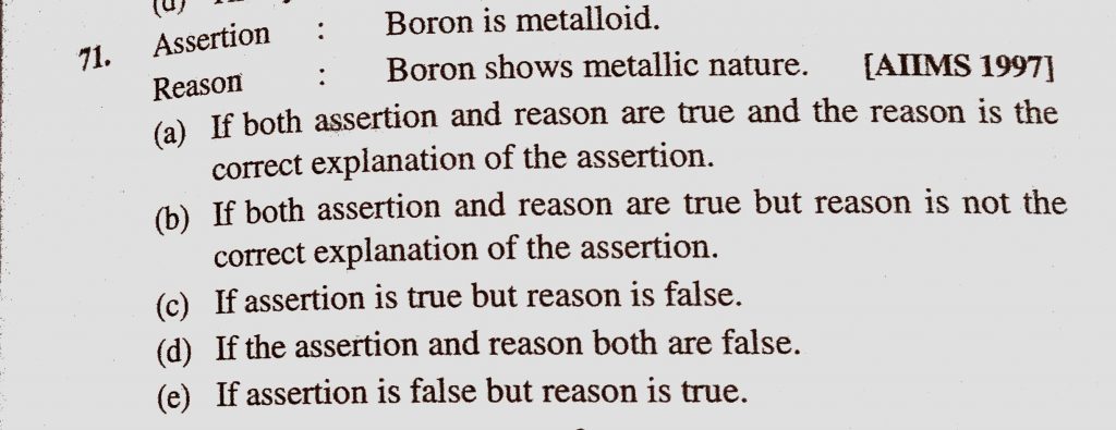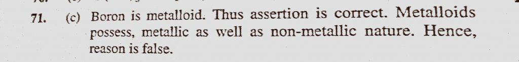 Assertion : Boron is metalloid Reason : Boron shows metallic nature Assertion : Boron is metalloid Reason : Boron shows metallic nature November 17, 2020 Category: Uncategorised (JEE Advanced Physics by BM Sharma + GMP Solutions) , Facebook Messenger WhatsApp Share this:TwitterFacebook Related