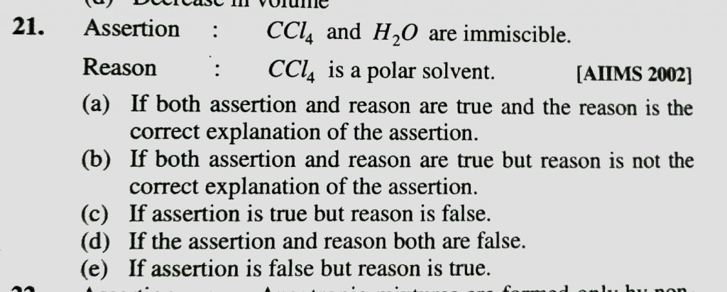 Assertion : CCL4 and H2O are immiscible. Reason : CCL4 is a polar solvent. Assertion : CCL4 and H2O are immiscible. Reason : CCL4 is a polar solvent. December 13, 2020 Category: Uncategorised (JEE Advanced Physics by BM Sharma + GMP Solutions) , Facebook Messenger WhatsApp Share this:TwitterFacebook Related