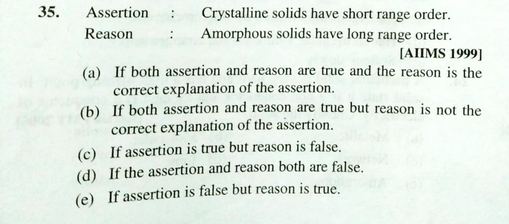 Assertion : Crystalline solids have short order. Reason : Amorphous solids have long range order. Assertion : Crystalline solids have short order. Reason : Amorphous solids have long range order. February 8, 2021 Category: Uncategorised (JEE Advanced Physics by BM Sharma + GMP Solutions) , Facebook Messenger WhatsApp Share this:TwitterFacebook Related
