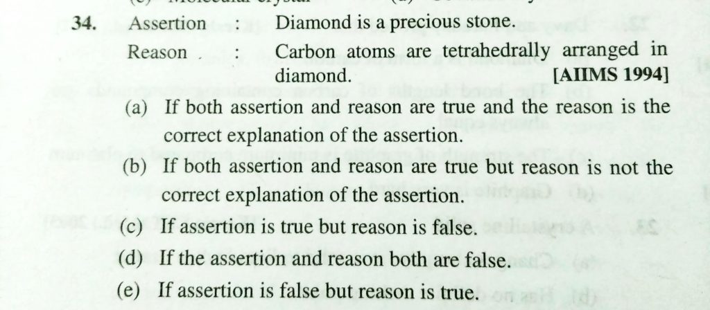 Assertion : Diamond is a precious stone. Reason : Carbon atoms are tetrahedrally arranged in diamond. Assertion : Diamond is a precious stone. Reason : Carbon atoms are tetrahedrally arranged in diamond. December 16, 2020 Category: Uncategorised (JEE Advanced Physics by BM Sharma + GMP Solutions) , Facebook Messenger WhatsApp Share this:TwitterFacebook Related