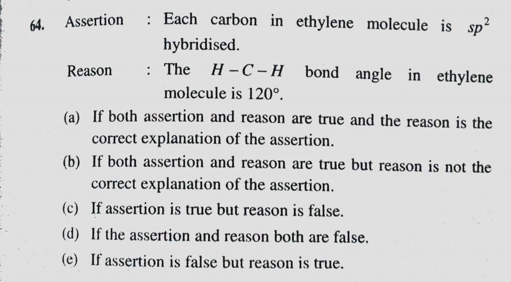 Assertion : Each carbon in ethylene molecule is sp2 hybridised Reason : The H-C-H bond angle in ethylene molecule is 120 Assertion : Each carbon in ethylene molecule is sp2 hybridised Reason : The H-C-H bond angle in ethylene molecule is 120 December 8, 2020 Category: Uncategorised (JEE Advanced Physics by BM Sharma + GMP Solutions) , Facebook Messenger WhatsApp Share this:TwitterFacebook Related