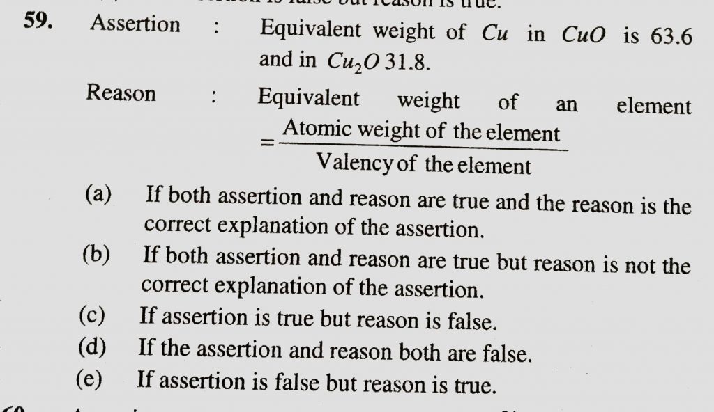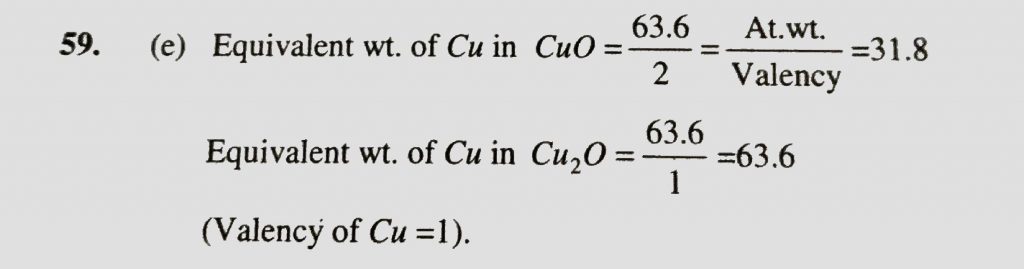 Assertion : Equivalent weight of Cu in CuO is 63.6 and in Cu2O 31.8. Reason : Equivalent weight of an element = Atomic weight of an element /Valency of the element Assertion : Equivalent weight of Cu in CuO is 63.6 and in Cu2O 31.8. Reason : Equivalent weight of an element = Atomic weight of an element /Valency of the element November 22, 2020 Category: Uncategorised (JEE Advanced Physics by BM Sharma + GMP Solutions) , Facebook Messenger WhatsApp Share this:TwitterFacebook Related