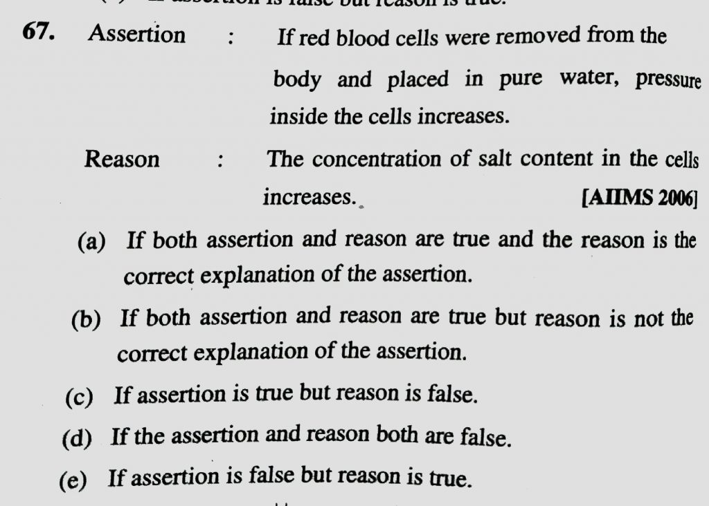 Assertion : If red blood cells were removed from the body and placed in pure water, pressure inside the cells increases. Reason : The concentration of salt content in the cells increases. Assertion : If red blood cells were removed from the body and placed in pure water pressure inside the cells increases. Reason : The concentration of salt content in the cells increases. December 13, 2020 Category: Uncategorised (JEE Advanced Physics by BM Sharma + GMP Solutions) , Facebook Messenger WhatsApp Share this:TwitterFacebook Related