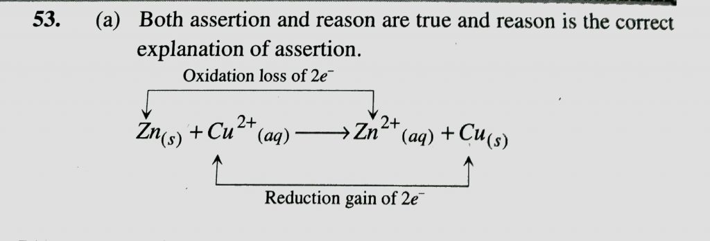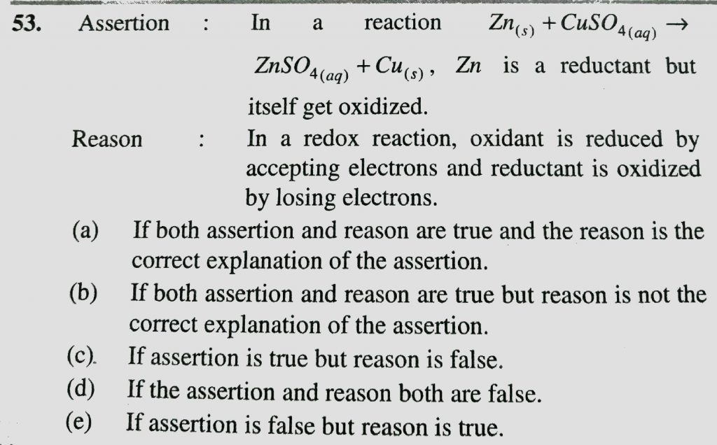 Assertion : In a reaction Zn(s) + CuSO4 (aq) gives ZnSO4 (aq) +Cu(s) , Zn is a reductant but itself get oxidized. Reason : In a redox reaction , oxidant is reduced by accepting electrons and reductant is oxidized by losing electrons. Assertion : In a reaction Zn(s) + CuSO4 (aq) gives ZnSO4 (aq) +Cu(s) oxidant is reduced by accepting electrons and reductant is oxidized by losing electrons. Zn is a reductant but itself get oxidized. Reason : In a redox reaction November 23, 2020 Category: Uncategorised (JEE Advanced Physics by BM Sharma + GMP Solutions) , Facebook Messenger WhatsApp Share this:TwitterFacebook Related