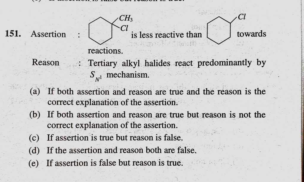 Assertion : is less reactive than towards reactions. Reason : Tertiary alkyl halides react predominantly by S N1 mechanism. Assertion : is less reactive than towards reactions. Reason : Tertiary alkyl halides react predominantly by S N1 mechanism. February 9, 2021 Category: Uncategorised (JEE Advanced Physics by BM Sharma + GMP Solutions) , Facebook Messenger WhatsApp Share this:TwitterFacebook Related