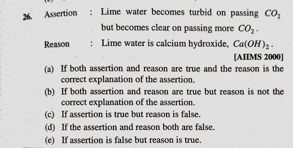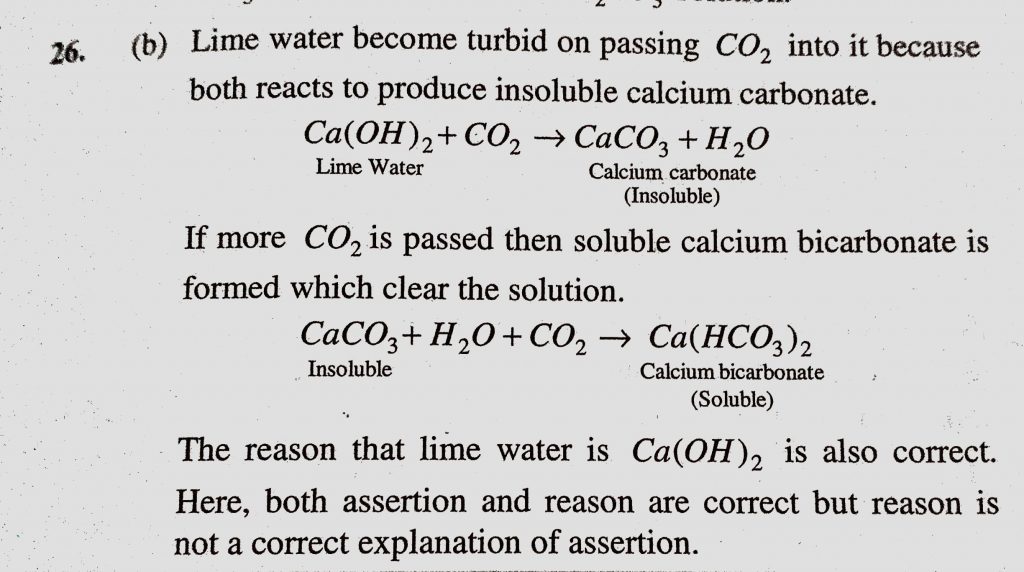 Assertion : Lime water becomes turbid on passing CO2 but becomes clear on passing more CO2. Reason : Lime water is calcium hydroxide, Ca(OH)2. Assertion : Lime water becomes turbid on passing CO2 but becomes clear on passing more CO2. Reason : Lime water is calcium hydroxide Ca(OH)2. December 6, 2020 Category: Uncategorised (JEE Advanced Physics by BM Sharma + GMP Solutions) , Facebook Messenger WhatsApp Share this:TwitterFacebook Related
