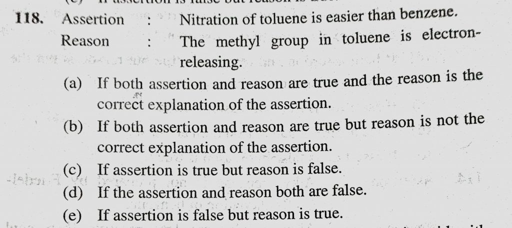Assertion : Nitration of toluene is easier than benzene. Reason : The methyl group in toluene is electron releasing. Assertion : Nitration of toluene is easier than benzene. Reason : The methyl group in toluene is electron releasing. December 15, 2020 Category: Uncategorised (JEE Advanced Physics by BM Sharma + GMP Solutions) , Facebook Messenger WhatsApp Share this:TwitterFacebook Related
