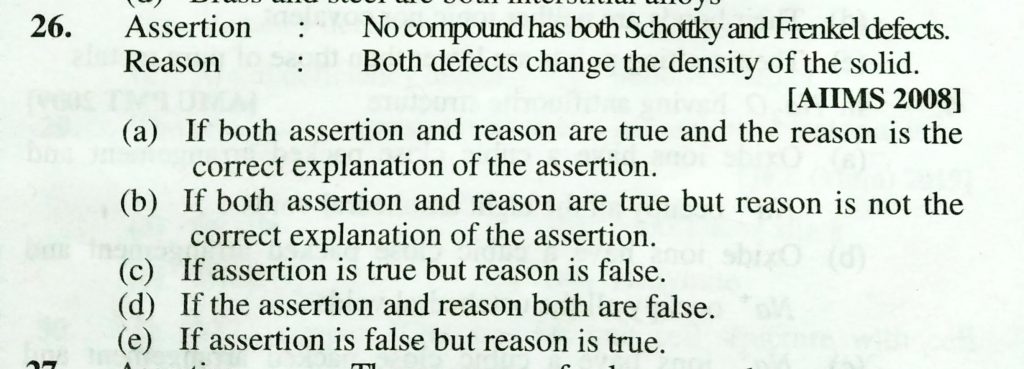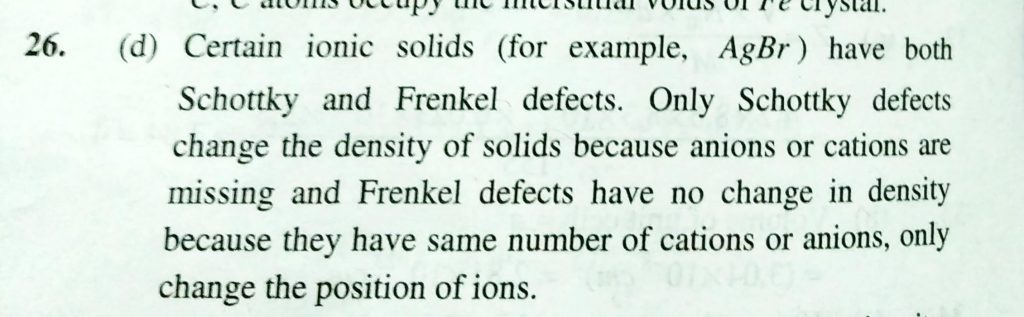 Assertion : No compound has both Schottky and frenkel defects Reason : Both defects change the density of the solid. Assertion : No compound has both Schottky and Frenkel defects. Reason : Both defects change the density of the solid. February 9, 2021 Category: Uncategorised (JEE Advanced Physics by BM Sharma + GMP Solutions) , Facebook Messenger WhatsApp Share this:TwitterFacebook Related