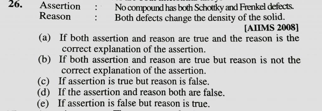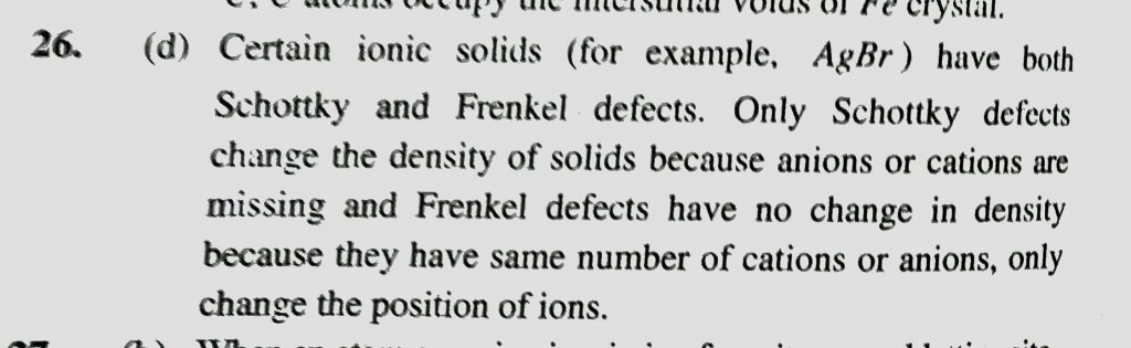 Assertion : No compound has both Schottky and Frenkel defects. Reason : Both defects change the density of the solid. Assertion : No compound has both Schottky and Frenkel defects. Reason : Both defects change the density of the solid. December 17, 2020 Category: Uncategorised (JEE Advanced Physics by BM Sharma + GMP Solutions) , Facebook Messenger WhatsApp Share this:TwitterFacebook Related