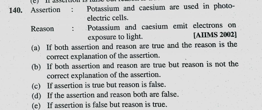 Assertion : Potassium and caesium are used in photo-electric cells. Reason : Potassium and caesium emit electrons on exposure to light. Assertion : Potassium and caesium are used in photo-electric cells. Reason : Potassium and caesium emit electrons on exposure to light. November 15, 2020 Category: Uncategorised (JEE Advanced Physics by BM Sharma + GMP Solutions) , Facebook Messenger WhatsApp Share this:TwitterFacebook Related