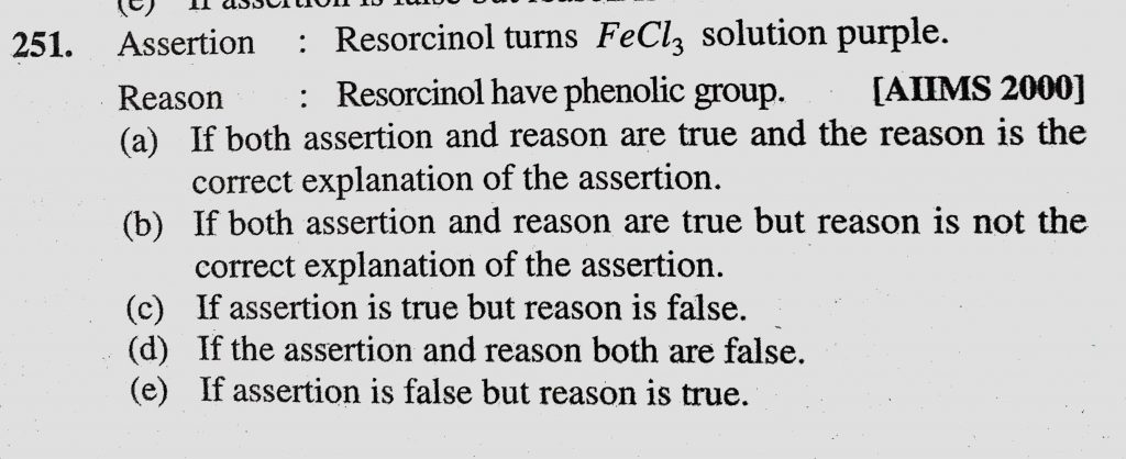 Assertion : Resorcinol turns FeCl3 solution purple. Reason : Resorcinol have phenolic group. Assertion : Resorcinol turns FeCl3 solution purple. Reason : Resorcinol have phenolic group. February 11, 2021 Category: Uncategorised (JEE Advanced Physics by BM Sharma + GMP Solutions) , Facebook Messenger WhatsApp Share this:TwitterFacebook Related