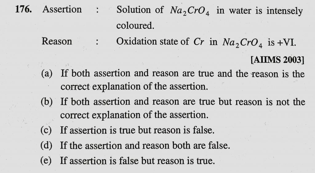 Assertion : Solution of Na2CrO4 in water is intensely coloured. Reason : Oxidation state of Cr in Na2CrO4 is + VI. Assertion : Solution of Na2CrO4 in water is intensely coloured. Reason : Oxidation state of Cr in Na2CrO4 is + VI. November 30, 2020 Category: Uncategorised (JEE Advanced Physics by BM Sharma + GMP Solutions) , Facebook Messenger WhatsApp Share this:TwitterFacebook Related