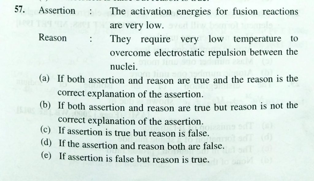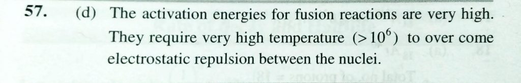 Assertion : THe activation energies for fusion reactions are very low. Reason : They require very low temperature to overcome electrostatic replusion between the nuclei. Assertion : THe activation energies for fusion reactions are very low. Reason : They require very low temperature to overcome electrostatic replusion between the nuclei. February 14, 2021 Category: Uncategorised (JEE Advanced Physics by BM Sharma + GMP Solutions) , Facebook Messenger WhatsApp Share this:TwitterFacebook Related