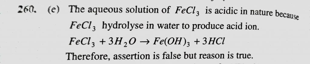 Assertion : The aqueous solution of FeCl3 is basic in nature. Reason : FeCl3 hydrolyses in water. Assertion : The aqueous solution of FeCl3 is basic in nature. Reason : FeCl3 hydrolyses in water. December 2, 2020 Category: Uncategorised (JEE Advanced Physics by BM Sharma + GMP Solutions) , Facebook Messenger WhatsApp Share this:TwitterFacebook Related