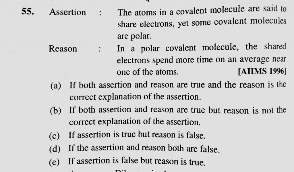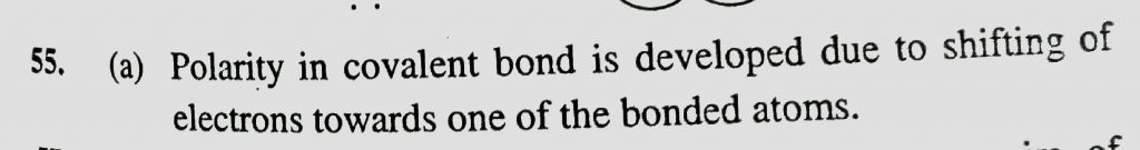 Assertion : The atoms in a covalent molecule are said to share electrons, yet some covalent molecule are polar. Reason :In a polar covalent molecule , the shared electron spend more time on the average near one of the atoms . Assertion : The atoms in a covalent molecule are said to share electrons the shared electron spend more time on the average near one of the atoms . yet some covalent molecule are polar. Reason :In a polar covalent molecule December 1, 2020 Category: Uncategorised (JEE Advanced Physics by BM Sharma + GMP Solutions) , Facebook Messenger WhatsApp Share this:TwitterFacebook Related