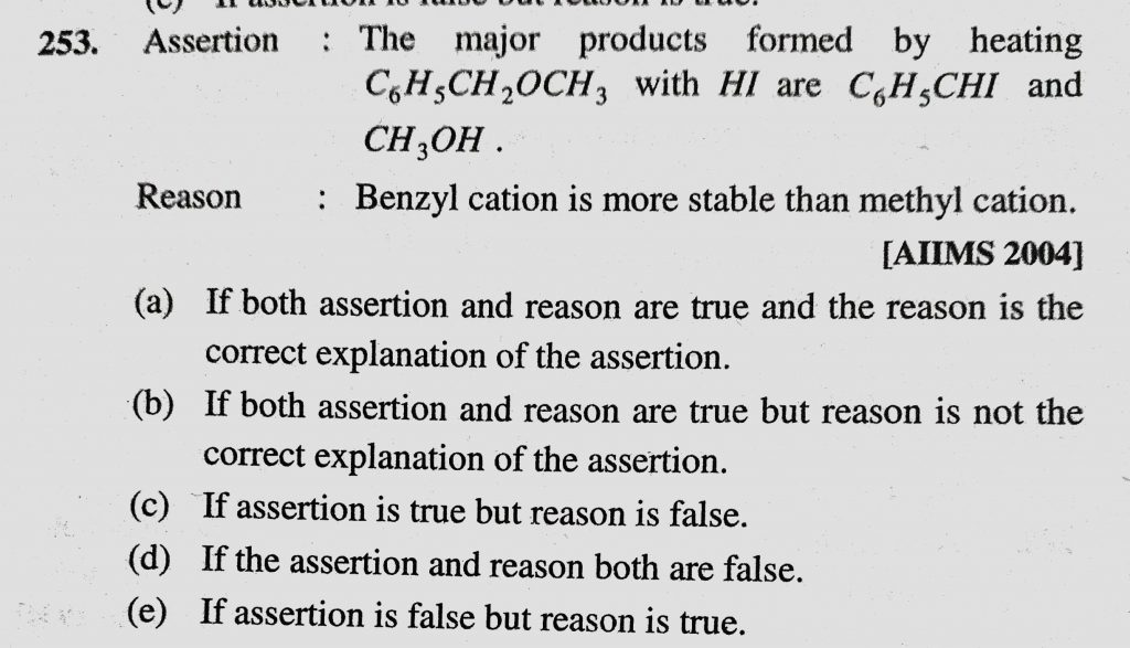 Assertion : The major products formed by heating C6H5CH2OCH3 with HI and C6H5CHI and CH3OH. Reason : Benzyl cation is more stable than methyl cation Assertion : The major products formed by heating C6H5CH2OCH3 with HI and C6H5CHI and CH3OH. Reason : Benzyl cation is more stable than methyl cation February 11, 2021 Category: Uncategorised (JEE Advanced Physics by BM Sharma + GMP Solutions) , Facebook Messenger WhatsApp Share this:TwitterFacebook Related