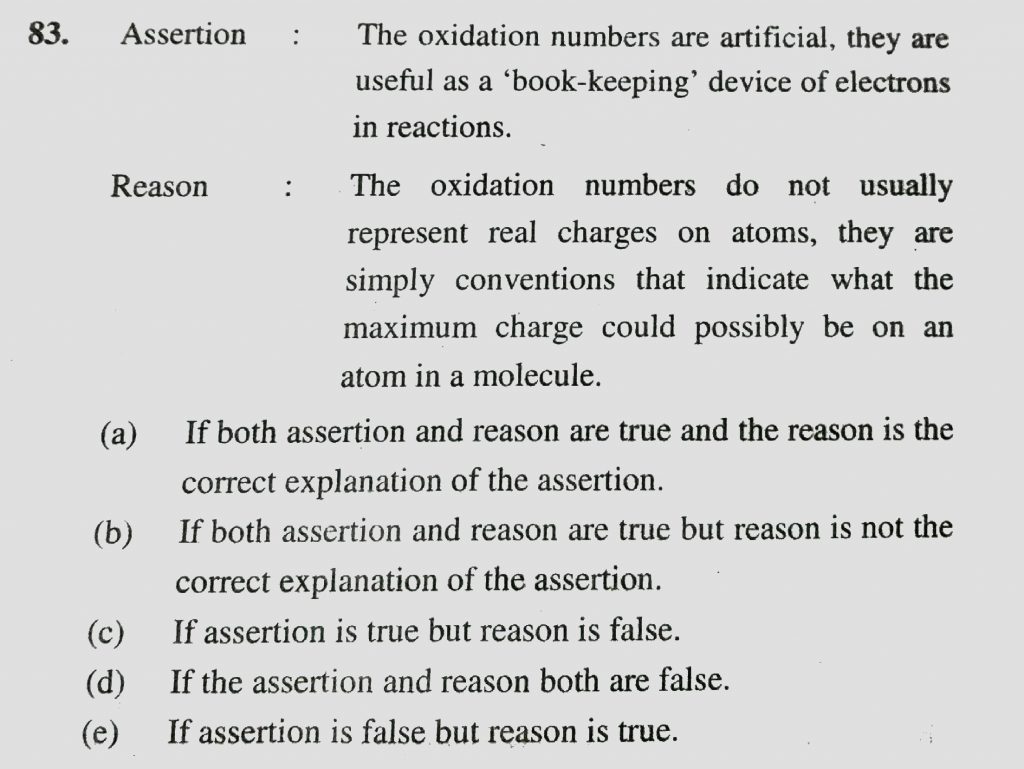 Assertion : the oxidation numbers are artificial , they are useful as a ‘book – keeping ‘ device of electrons in reactions. Reason : THe oxidation numbers do not usually represent real charges on atoms , they are simply conventions that indicate what the maximum charge could possibly be on an atom in a molecule.