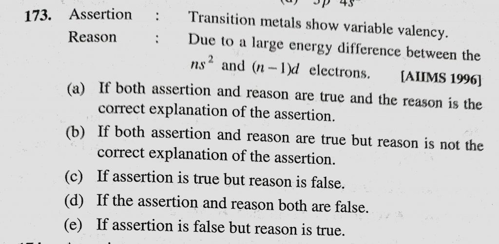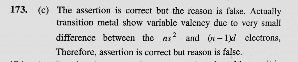 Assertion : Transition metals show variable valency. Reason : Due to a large energy difference between the ns2 and (n – 1)d electrons. Assertion : Transition metals show variable valency. Reason : Due to a large energy difference between the ns2 and (n - 1)d electrons. November 30, 2020 Category: Uncategorised (JEE Advanced Physics by BM Sharma + GMP Solutions) , Facebook Messenger WhatsApp Share this:TwitterFacebook Related