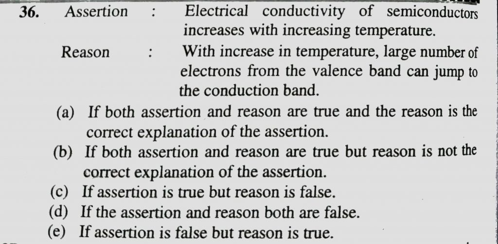 Assertionn : Electrical conductivity of semiconductors increases with increasing temperature. Reason : With increase in temperature , large number of electrons from the valence band can jump to the conduction band. Assertionn : Electrical conductivity of semiconductors increases with increasing temperature. Reason : With increase in temperature large number of electrons from the valence band can jump to the conduction band. February 8, 2021 Category: Uncategorised (JEE Advanced Physics by BM Sharma + GMP Solutions) , Facebook Messenger WhatsApp Share this:TwitterFacebook Related