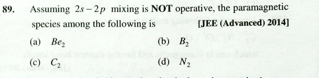 Assuming 2s – 2p mixing is NOT operative , the paramagnetic species among the following is Assuming 2s - 2p mixing is NOT operative the paramagnetic species among the following is December 10, 2020 Category: Uncategorised (JEE Advanced Physics by BM Sharma + GMP Solutions) , Facebook Messenger WhatsApp Share this:TwitterFacebook Related