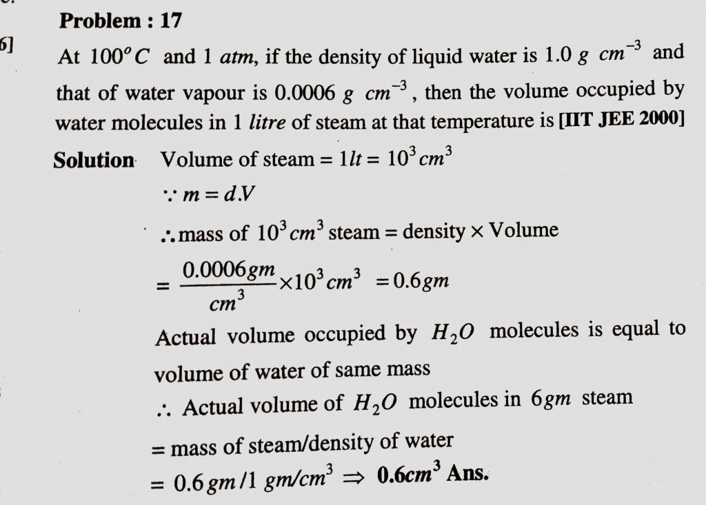 AT 100 degree and 1 atm , if the density of liquid water is 1.0 g/cm^3 and that of water vapour is 0.0006 g/cm^3 ,then the volume occupied by water molecules in one litre of steam at that temperature is AT 100 degree and 1 atm if the density of liquid water is 1.0 g/cm^3 and that of water vapour is 0.0006 g/cm^3 then the volume occupied by water molecules in one litre of steam at that temperature is February 12, 2021 Category: Uncategorised (JEE Advanced Physics by BM Sharma + GMP Solutions) , Facebook Messenger WhatsApp Share this:TwitterFacebook Related