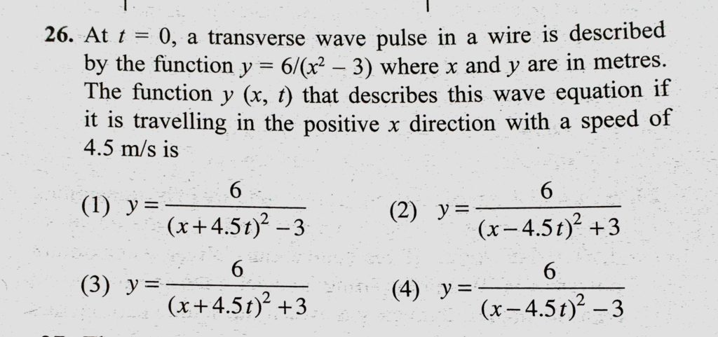 At t = 0 a transverse wave pulse in a wire is described by the function y = 6/ (x^2 – 3) where x and y are in metres. The function y (x,t) that describes this wave equation if it is At t = 0 a transverse wave pulse in a wire is described by the function y = 6/ (x^2 - 3) where x and y are in metres. The function y (x t) that describes this wave equation if it is November 1, 2020 Category: Uncategorised (JEE Advanced Physics by BM Sharma + GMP Solutions) , Facebook Messenger WhatsApp Share this:TwitterFacebook Related
