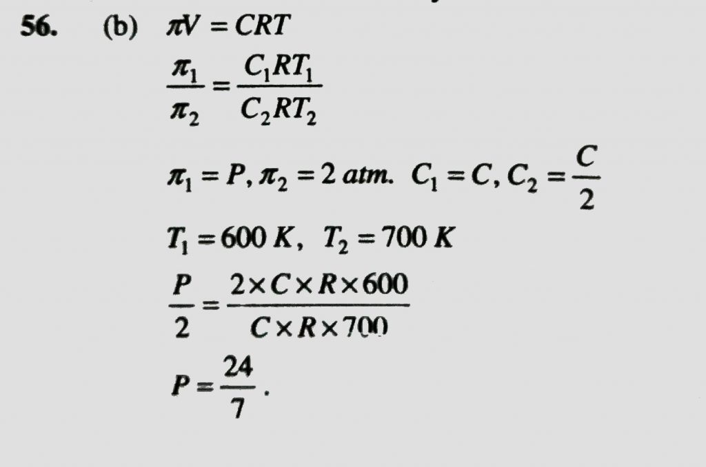 At temperature 327∘C and concentration C osmotic pressure of a solution is P, the same solutions at concentration C/2 and a temperature 427∘C shows osmotic pressure 2 atm, value of P will be At temperature 327∘C and concentration C osmotic pressure of a solution is P the same solutions at concentration C/2 and a temperature 427∘C shows osmotic pressure 2 atm value of P will be December 13, 2020 Category: Uncategorised (JEE Advanced Physics by BM Sharma + GMP Solutions) , Facebook Messenger WhatsApp Share this:TwitterFacebook Related