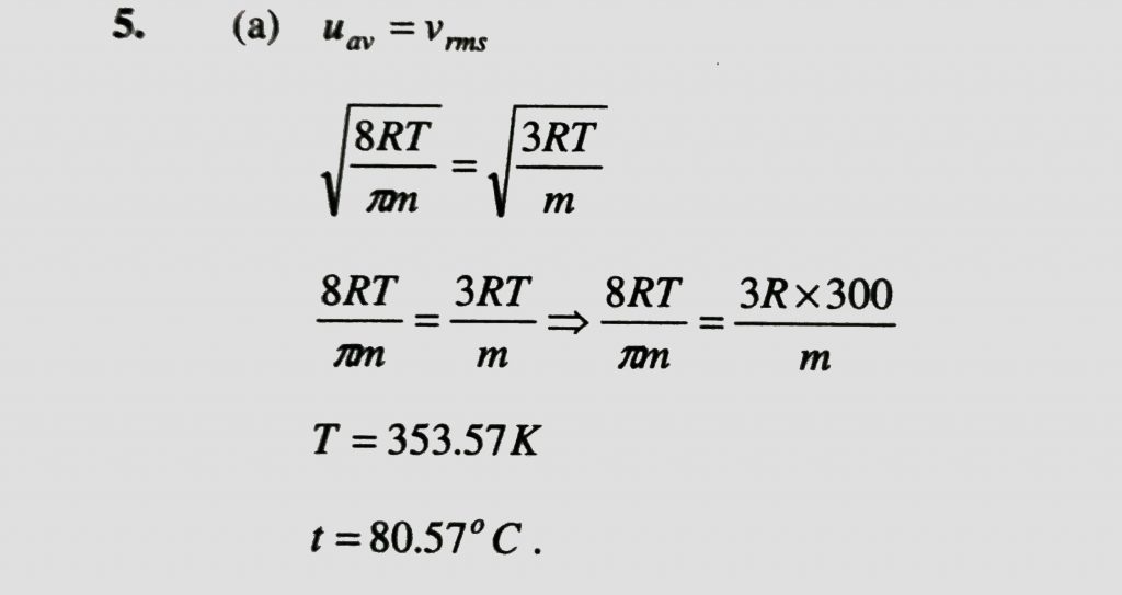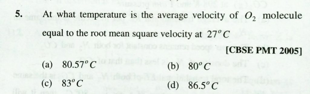 At what temperature is the average velocity of O2 molecule equal to teh root mean square velocity at 27 degree C At what temperature is the average velocity of O2 molecule equal to teh root mean square velocity at 27 degree C February 11, 2021 Category: Uncategorised (JEE Advanced Physics by BM Sharma + GMP Solutions) , Facebook Messenger WhatsApp Share this:TwitterFacebook Related