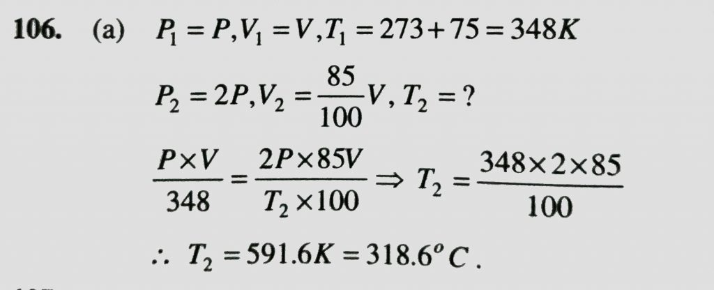 At what temperature , the sample of neon gas would be heated to double of its pressure , if the initial volume of gas is /are reduced to 15 % at 75 degree C At what temperature if the initial volume of gas is /are reduced to 15 % at 75 degree C the sample of neon gas would be heated to double of its pressure February 11, 2021 Category: Uncategorised (JEE Advanced Physics by BM Sharma + GMP Solutions) , Facebook Messenger WhatsApp Share this:TwitterFacebook Related