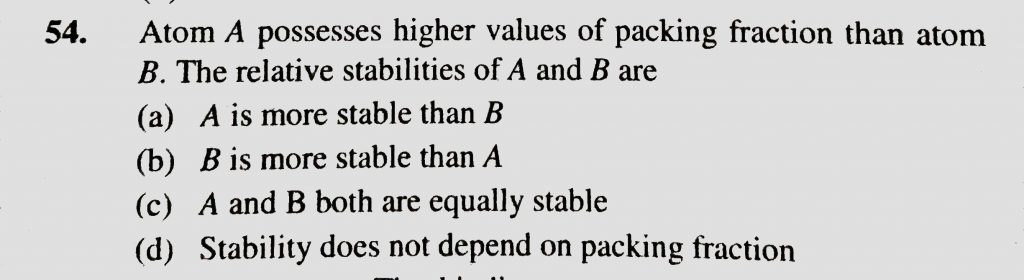 Atom A possesses higher values of packing fraction than atom B. The realative stablities of A and B are Atom A possesses higher values of packing fraction than atom B. The realative stablities of A and B are February 13, 2021 Category: Uncategorised (JEE Advanced Physics by BM Sharma + GMP Solutions) , Facebook Messenger WhatsApp Share this:TwitterFacebook Related