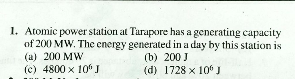 Atomic power station at Tarapore has a generating capacity of 200 MW. The energy generated in a day by this station is Atomic power station at Tarapore has a generating capacity of 200 MW. The energy generated in a day by this station is September 15, 2020 Category: Uncategorised (JEE Advanced Physics by BM Sharma + GMP Solutions) , Facebook Messenger WhatsApp Share this:TwitterFacebook Related