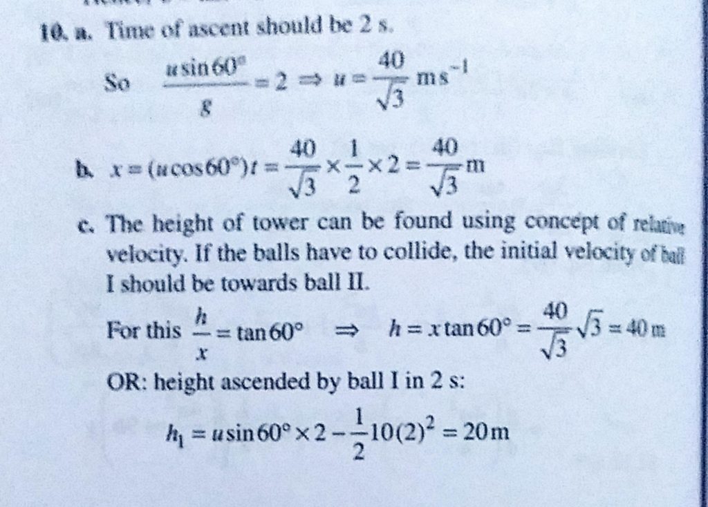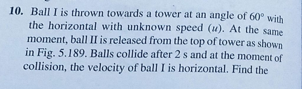 Ball 1 is thrown towards a tower at an angle of 60 with the horizontal with unknown speed (u). At the same moment, ball 2 is released from the top of tower as shown in Fig. 5.189. Balls Ball 1 is thrown towards a tower at an angle of 60 with the horizontal with unknown speed (u). At the same moment ball 2 is released from the top of tower as shown in Fig. 5.189. Balls September 22, 2020 Category: Uncategorised (JEE Advanced Physics by BM Sharma + GMP Solutions) , Facebook Messenger WhatsApp Share this:TwitterFacebook Related