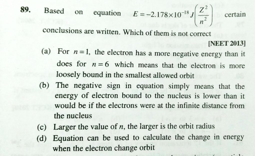 Based on equation E = -2.178 x 10^-18 J [ Z^2 /n^2 ] certain conclusion are written. Which of them is not correct Based on equation E = -2.178 x 10^-18 J [ Z^2 /n^2 ] certain conclusion are written. Which of them is not correct November 27, 2020 Category: Uncategorised (JEE Advanced Physics by BM Sharma + GMP Solutions) , Facebook Messenger WhatsApp Share this:TwitterFacebook Related
