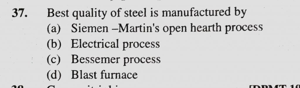 Best quality of steel is manufactured by (a) Siemen – Martin’s open hearth process (b) Electrical process Best quality of steel is manufactured by (a) Siemen - Martin's open hearth process (b) Electrical process December 1, 2020 Category: Uncategorised (JEE Advanced Physics by BM Sharma + GMP Solutions) , Facebook Messenger WhatsApp Share this:TwitterFacebook Related