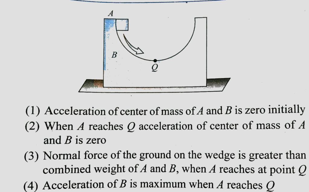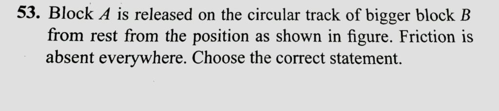 Block A is released on the circular track of bigger block B from rest from the position as shown in figure. Friction is absent everywhere. Choose the correct statement. Block A is released on the circular track of bigger block B from rest from the position as shown in figure. Friction is absent everywhere. Choose the correct statement. September 21, 2020 Category: Uncategorised (JEE Advanced Physics by BM Sharma + GMP Solutions) , Facebook Messenger WhatsApp Share this:TwitterFacebook Related